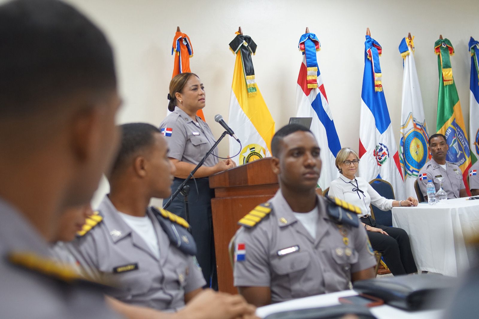 La jornada evaluativa se llevó a cabo en el salón académico multiuso del Instituto Policial de Educación Superior (IPES), dónde los futuros oficiales subalternos fueron recibidos por el coronel Cecilio Delgado Agramonte, quien estuvo acompañado por la vicerectora académica, coronel Aida María Valdez Liranzo, la vicerrectora de Investigación, Extensión y Postgrado, asimilada militar Fanny Torres Rosario, y el director de la Escuela de Altos Estudios, coronel Erogues Rosario Fortuna.