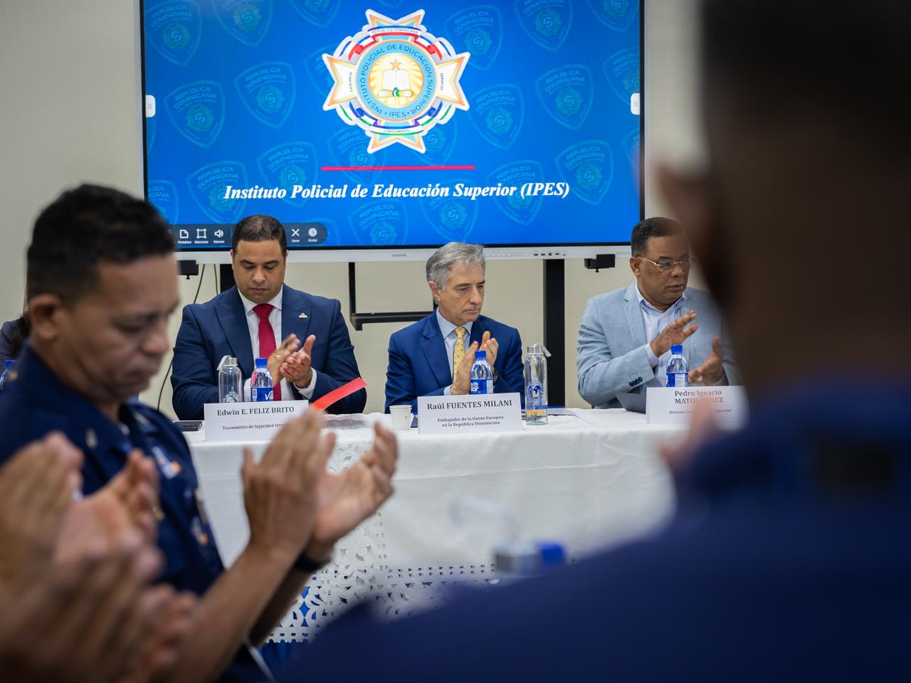 En la ceremonia de apertura, realizada en el Salón de eventos académico del IPES, estuvieron presentes importantes autoridades nacionales e internacionales. Entre los asistentes se destacaron el viceministro de Seguridad Interior del Ministerio de Interior y Policía, Edwin Eusebio Feliz Brito; el embajador de la Unión Europea en Santo Domingo, Raúl Fuentes Milani; el director Central de Investigación (DICRIM), general Pedro Ignacio Matos Pérez, el jefe de la oficina INTERPOL en Santo Domingo, coronel Sandis Feliz Beltré, y el vicerrector administrativo del IPES, coronel Rafael Feliz Martínez, en representación del rector, general Juan Hilario Guzmán Badia.