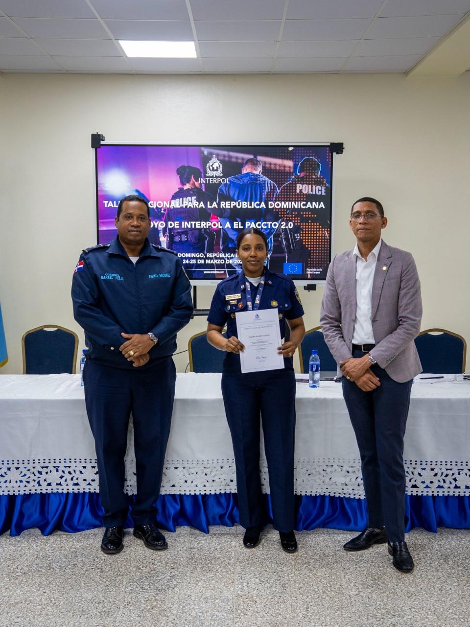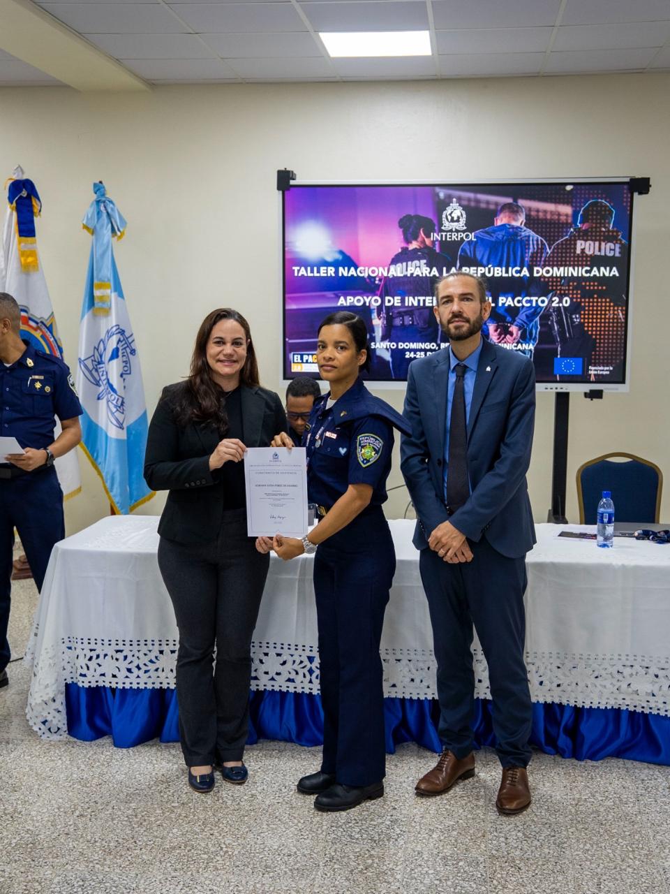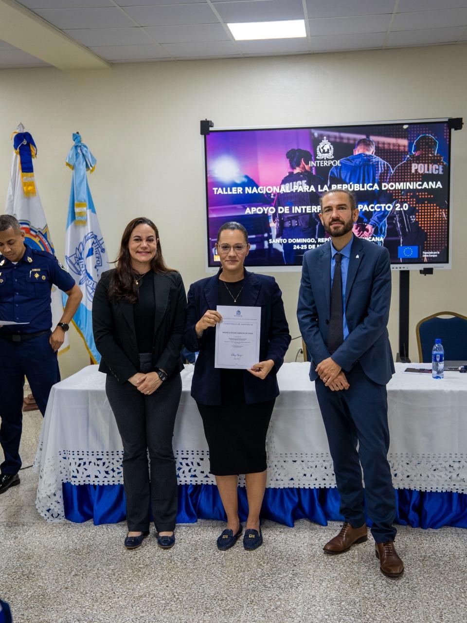Esta capacitación fue impartida por la oficial de Inteligencia Criminal de INTERPOL, Ana Paula Vilanova de Holanda; el oficial de Programas de la Delegación Unión Europea en la República Dominicana, Ignacio Martín Aresta, y el gerente de proyectos de INTERPOL, Lionel Try.