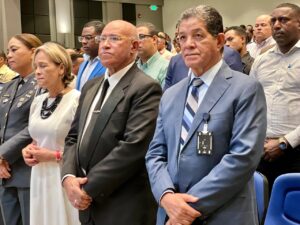 Estuvieron presentes autoridades académicas y policiales, entre ellas el director central de Policía de Turismo (Politur), general Minoru Matsunaga; la vicerrectora académica del IPES, coronel Aida María Valdez, vicerrectora académica, la vicerrectora de Investigación Extensión y Postgrado, maestra Fanny Torres Rosario, así como representantes del MESCyT.