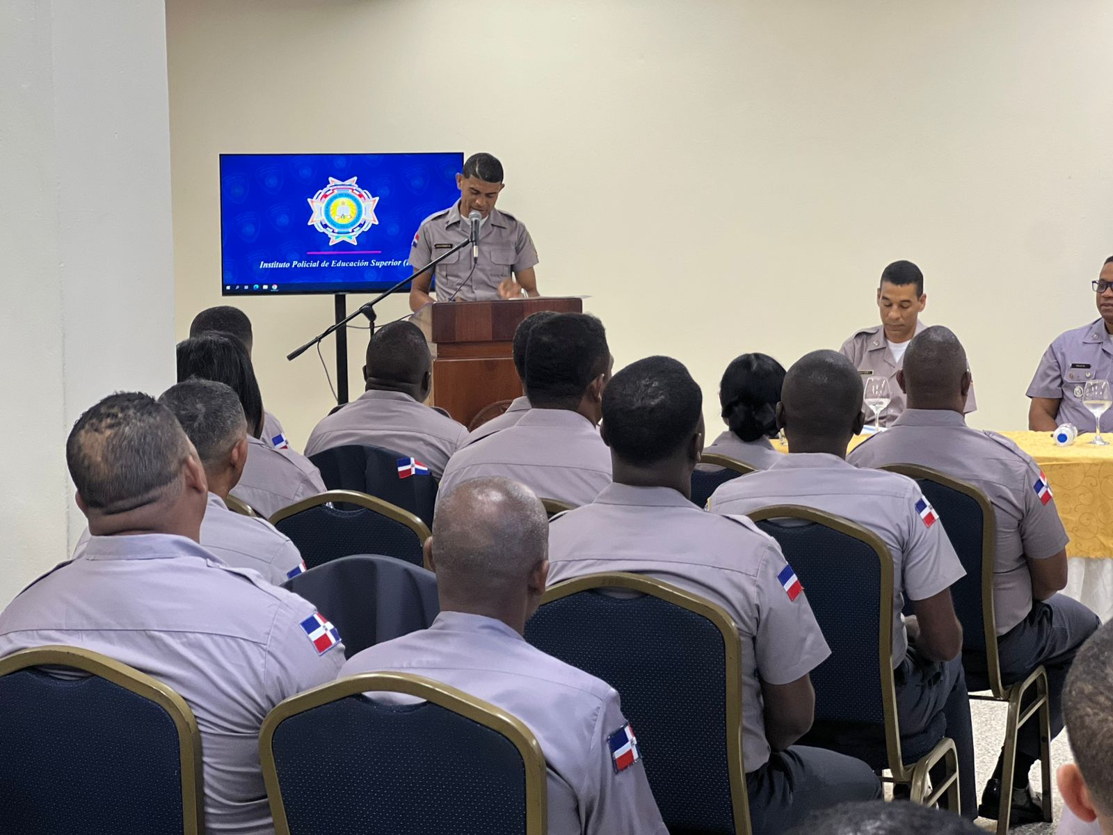 La vicerrectora académica del IPES, coronel Aida María Valdez Liranzo, en representación del rector, coronel Cecilio Delgado Agramonte, ofreció la más cordial bienvenida a los discentes. En su intervención, estuvo acompañada por otras destacadas autoridades académicas y exhortó a los participantes a asumir con responsabilidad y compromiso este proceso formativo, que busca elevar la calidad del servicio policial y fortalecer la confianza ciudadana en la institución.