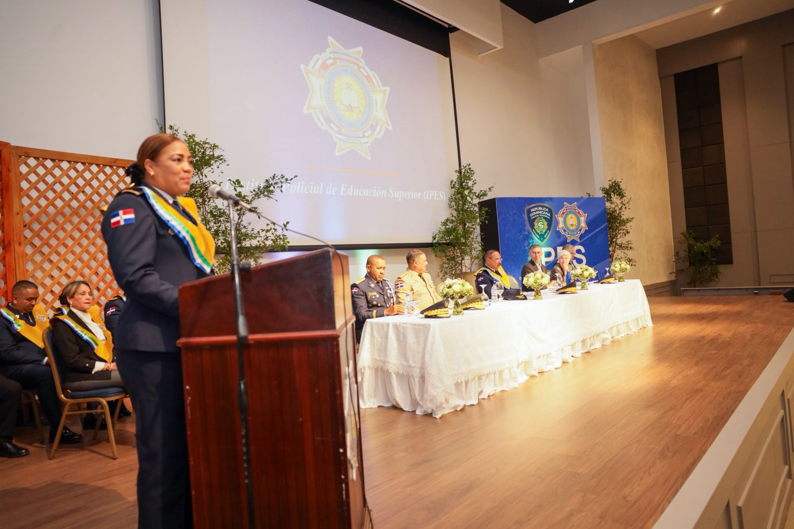 Durante el acto, el teniente coronel Martín Fabiolo Peña Beato, en representación de los graduandos, expresó palabras de agradecimiento y afirmó que esta formación reafirma el compromiso institucional con la excelencia, la responsabilidad y el servicio. Destacó además el rol del IPES como pilar esencial en la construcción del futuro institucional, al ofrecer educación de calidad para proteger y servir con eficiencia.
