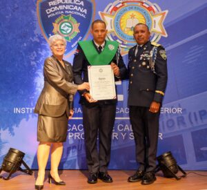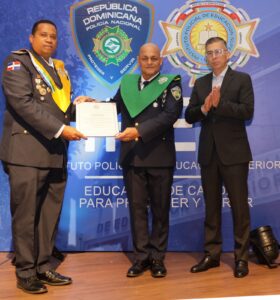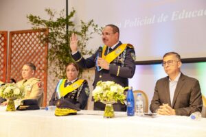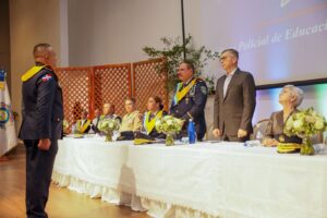 La ceremonia, realizada en el Auditorio de la plaza educativa Juan Pablo Duarte, fue encabezada por el general Juan Hilario Guzmán Badía, subdirector de la Policía Nacional y director Central de Transformación Policial, en representación del mayor general Ramón Antonio Guzmán Peralta, director general de la institución.