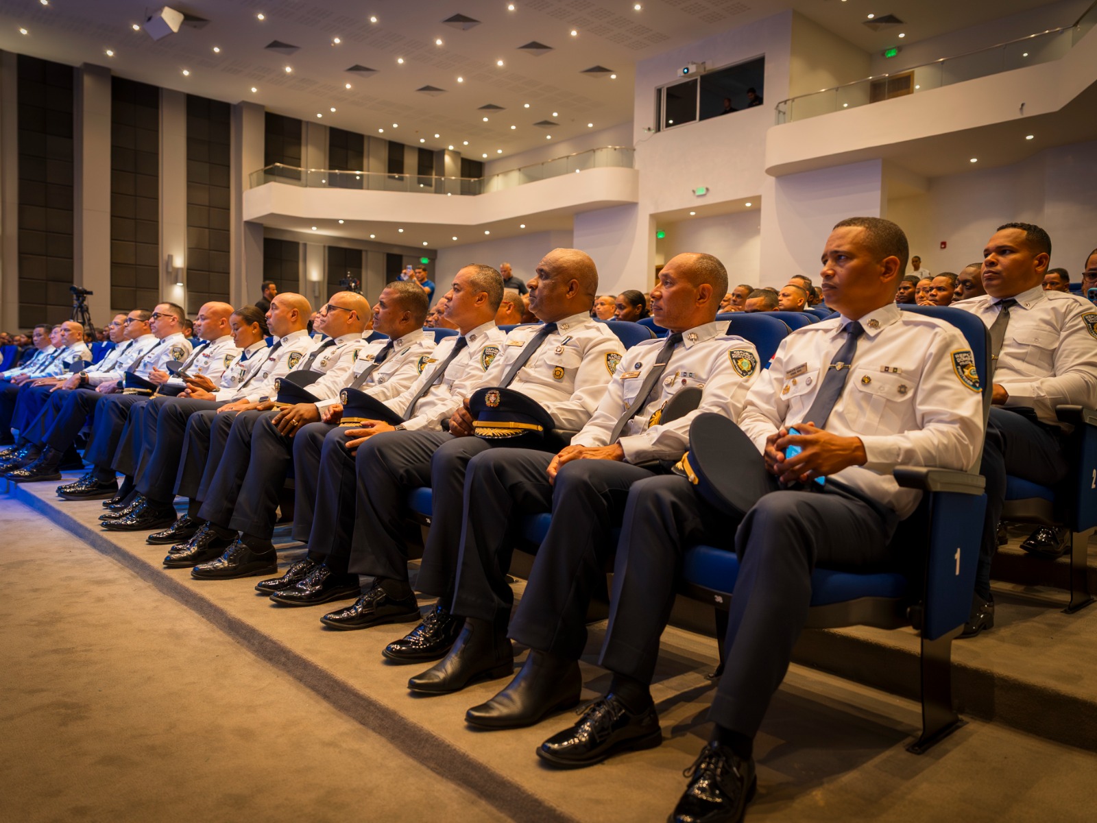 En el acto de clausura también estuvieron presentes autoridades y miembros de la Policía Nacional, incluyendo generales, coroneles y representantes de diferentes departamentos, reafirmando el respaldo institucional al proceso de modernización y profesionalización policial.