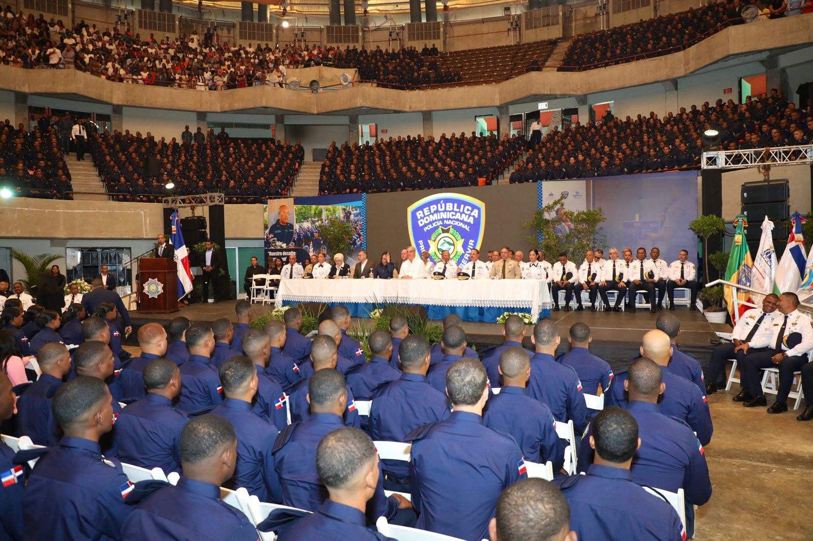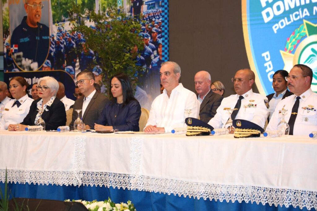 Tras tomar el juramento a los nuevos miembros de la Policía en el Coliseo Teo Cruz, de las promociones 146 “María Trinidad Sánchez” de la Escuela de Entrenamiento Policial de Hatillo, San Cristóbal y 147 “Hermanas Mirabal” del Campus Gaspar Hernández, Espaillat, el jefe de Estado felicitó a los padres y madres de los graduandos por el apoyo, sacrificio y dedicación brindados durante el proceso de formación, al tiempo que los exhortó a sentirse orgullosos de ver a sus hijos servir a la patria con honor, disciplina y compromiso ciudadano.