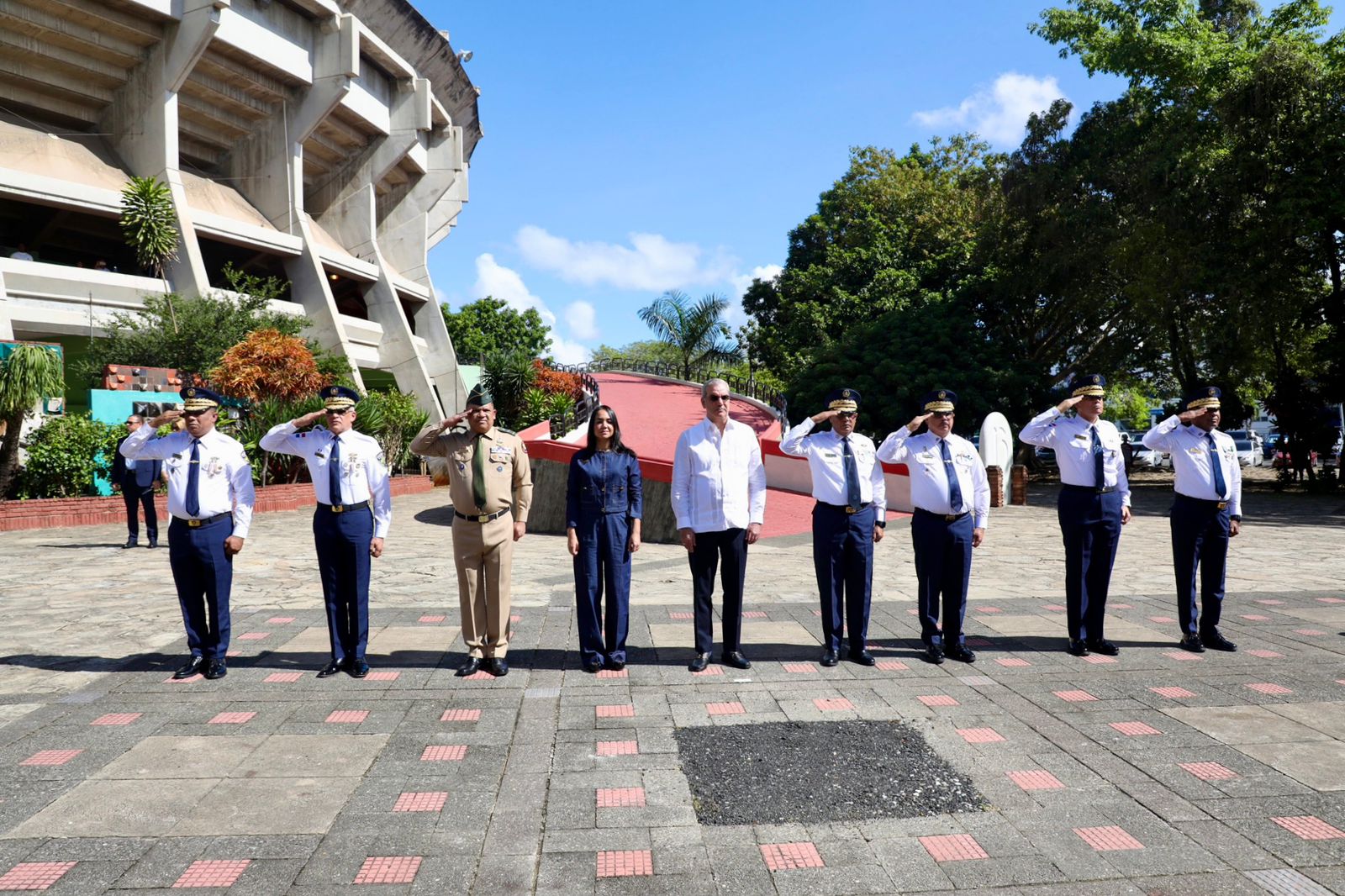 Acompañaron al presidente Luis Abinader, en representación del ministro de Defensa, teniente coronel Carlos Antonio Fernández Onofre, estuvo el rector de la Universidad Nacional de la Defensa (UNADE), mayor general, Rafael Vázquez Espínola; el subdirector de la Policía Nacional, general Juan Guzmán; el comisionado ejecutivo para la Reforma Policial, Luis Ernesto Hernández y la rectora interina del Instituto Policial de Educación Superior (IPES), coronel Aída M. Valdez.
